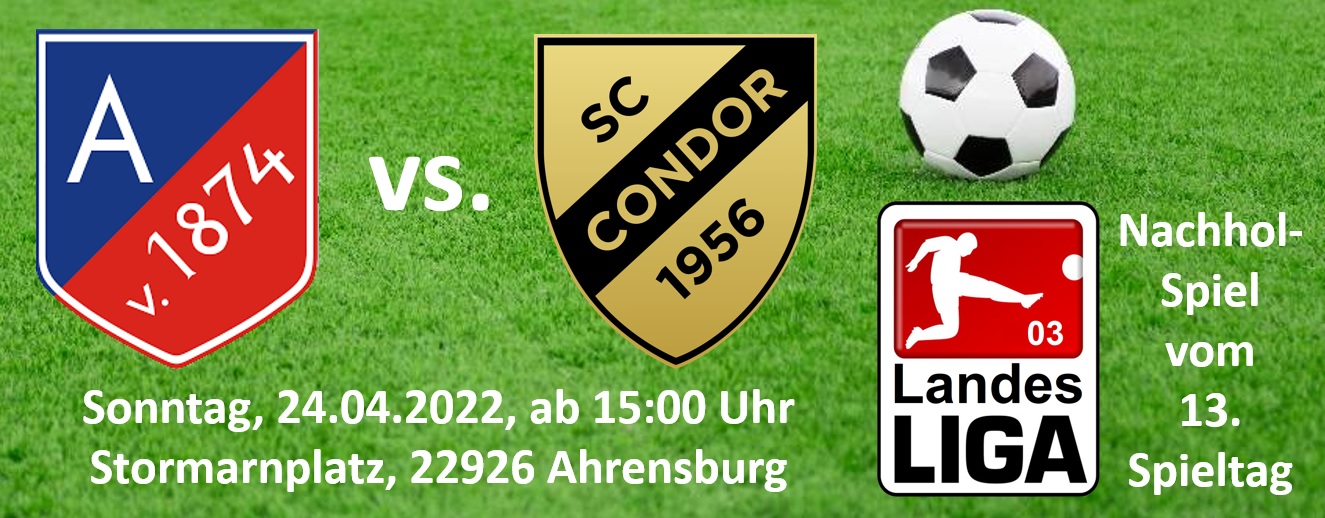 In einem Nachholspiel vom 13. Spieltag in der HH-Landesliga-Staffel 03 schlugen wir am Sonntag, 24.04.2022 den SC Condor auf dem Stormarnplatz mit 2:0 (0:0).