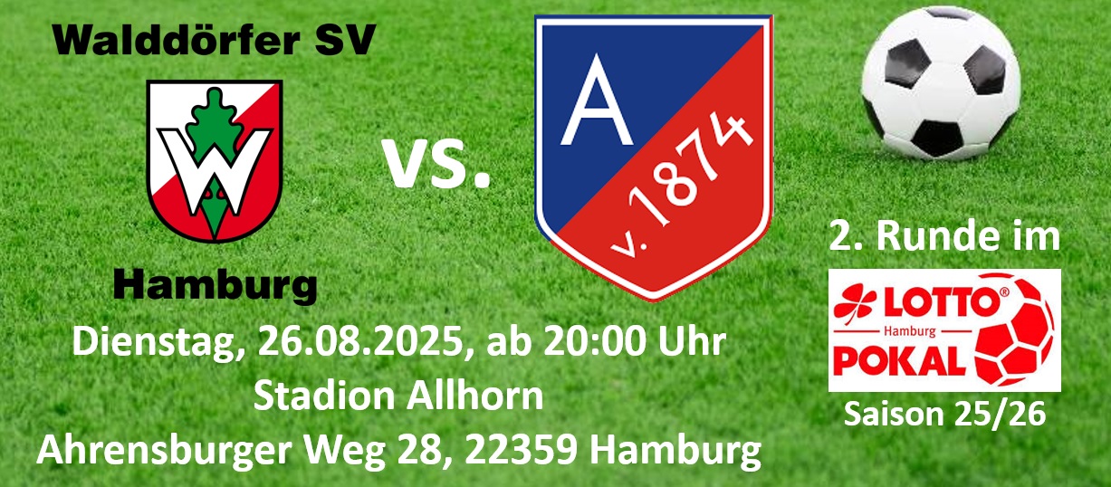In der 2. Runde des Hamburger LOTTO-Pokals trafen wir auswärts auf den Walddörfer SV aus der HH-Bezirksliga-03 und siegten im Elfmeterschießen. Zur Halbzeit stand es 0:0, nach 90 Minuten 2:2.